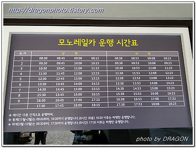오르면서 느낀건데 유리창문이 상당히 더럽다. 앞으로 관광객을 위해서라도 모노레일카의 유리창문은 항상 깨끗이 유지해야겠다.