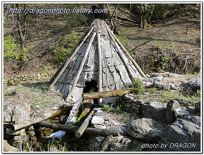 주차장이 있는 대이동굴관리소 옆에는 너와집이 있는데 여기 너와집은 대이리 206번지에 현존하는 이종옥 가옥의 원형을 복원하여 관람이 가능하도록 신축한 것이다. 환선굴에 오르기 전에 너와집을 우선 구경하였다.