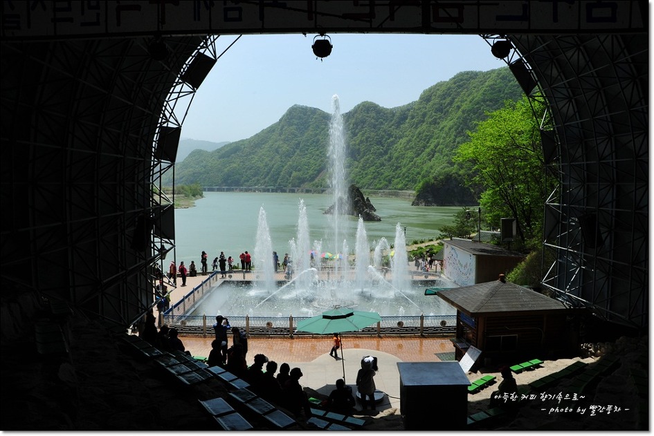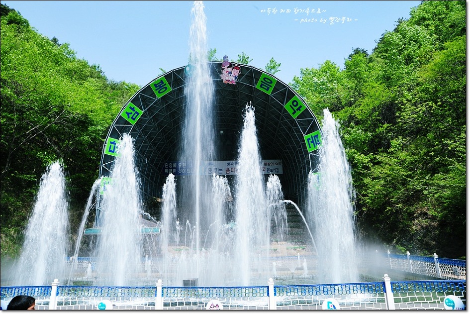 도담삼봉을 구경하고 팔경 중 제2경인 석문으로 올라가게 되면 음악분수가 보입니다