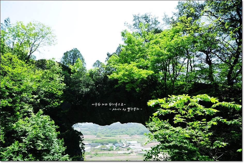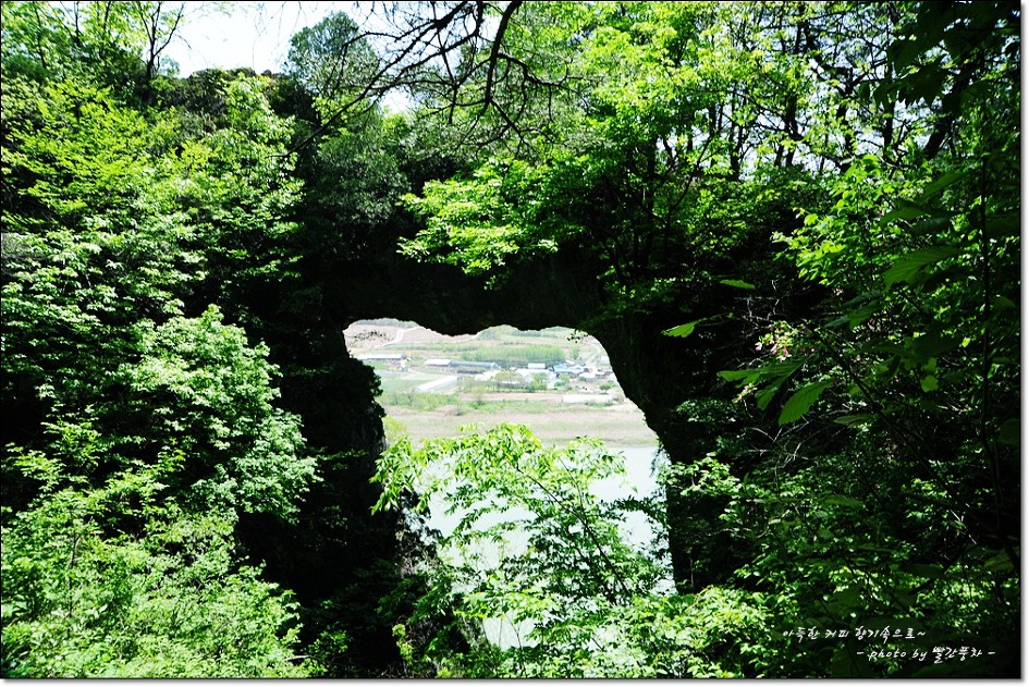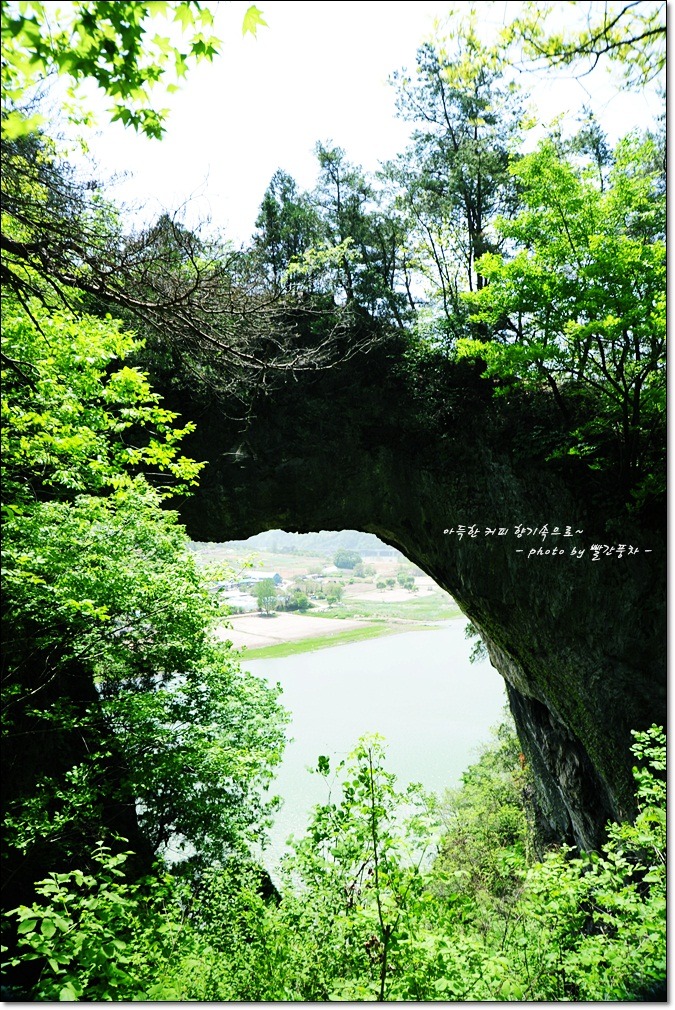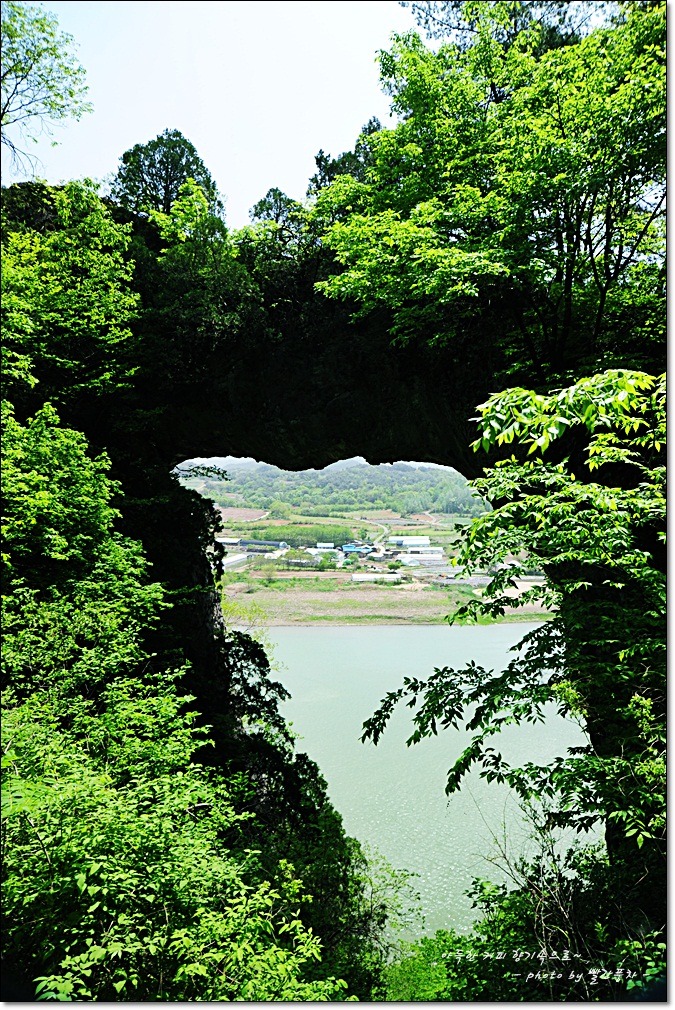 둥그랗게 열린 석문 안에 남한강의 시원한 풍경이 가득 차 있는 모습이 멋집니다