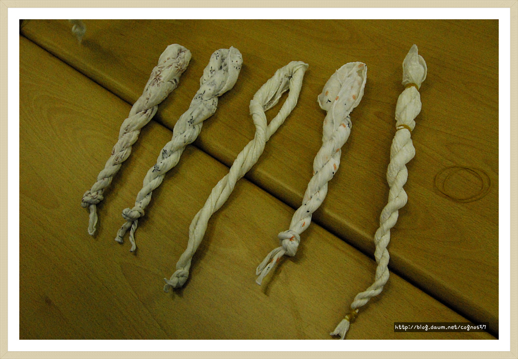 흰손수건,나무젓가락,고무줄,실등과 발효된 쪽물