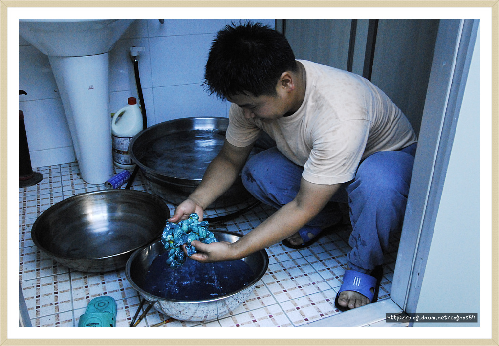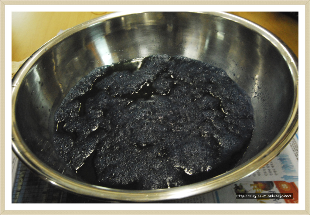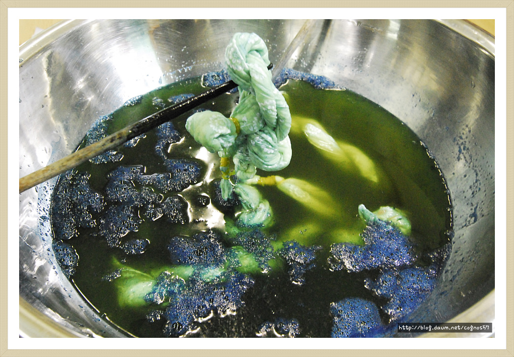 여기에 손수건을 담?다가 건져서 행구어 내면 쪽염색이 됩니다.