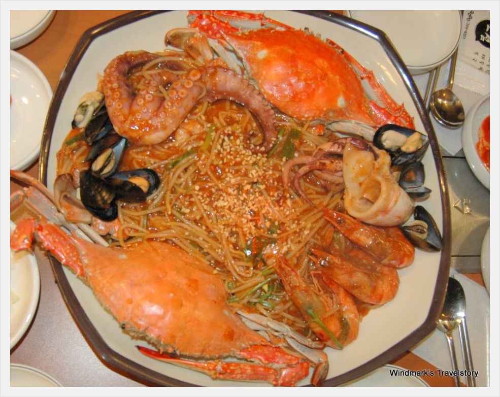 꽃게 두마리, 새우 3마리, 문어 1마리외에 조개등등 콩나물로 만들어진 해물찜입니다.