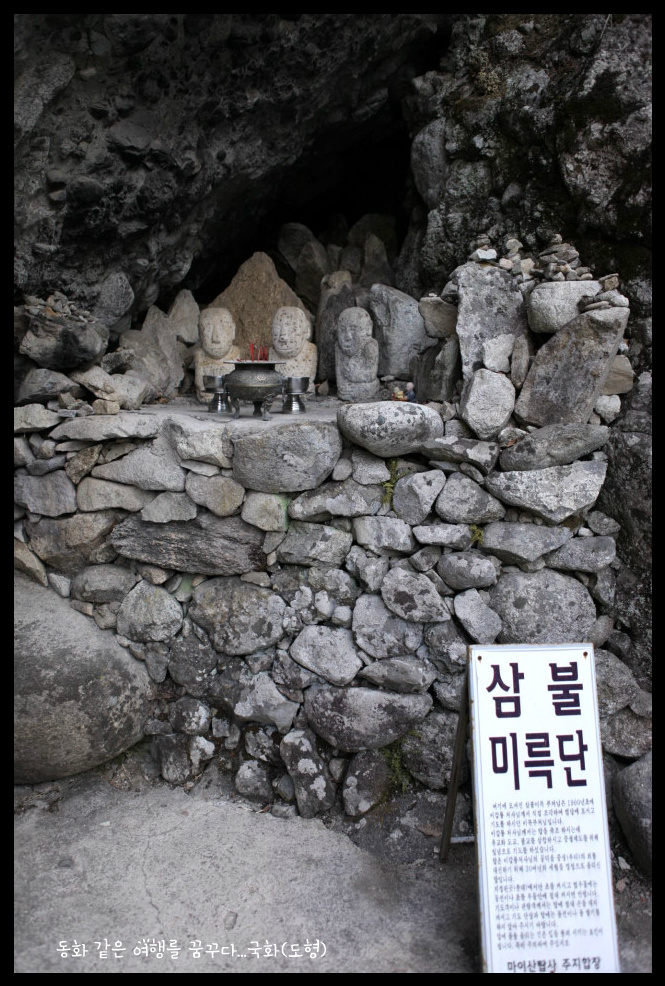 암굴 안에는 물이 솟아나는데 예로부터 이 물을 마시고 산신에게 빌면 득남을 한다고 전해진다.