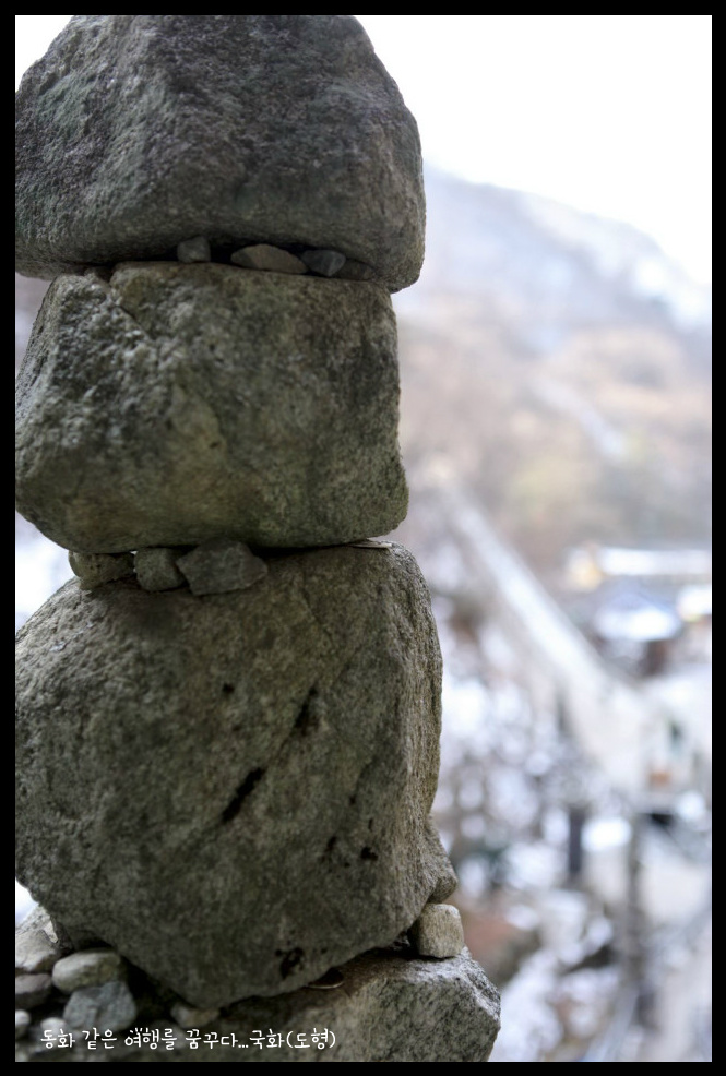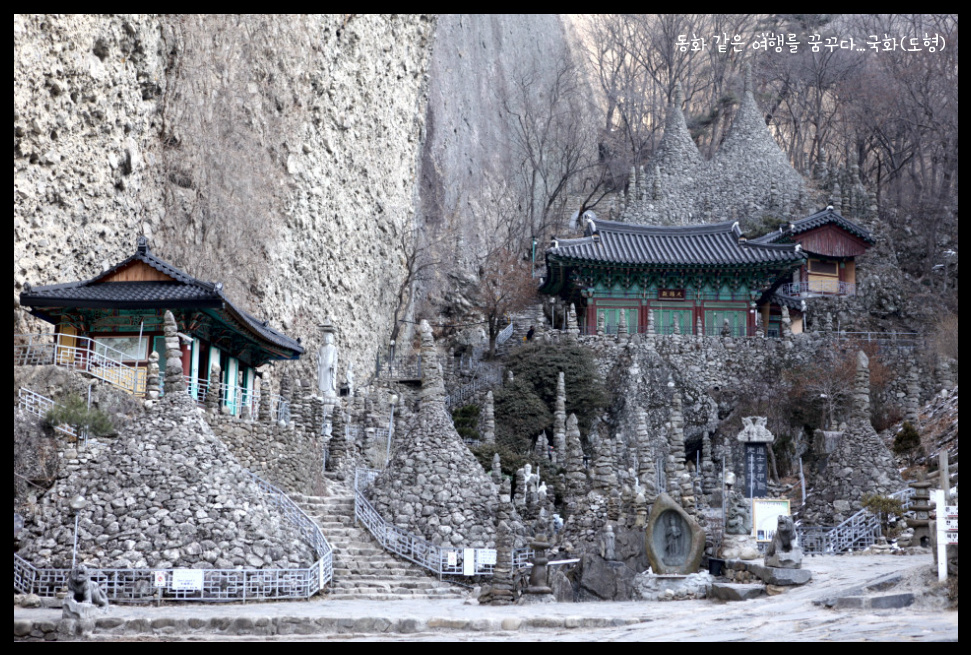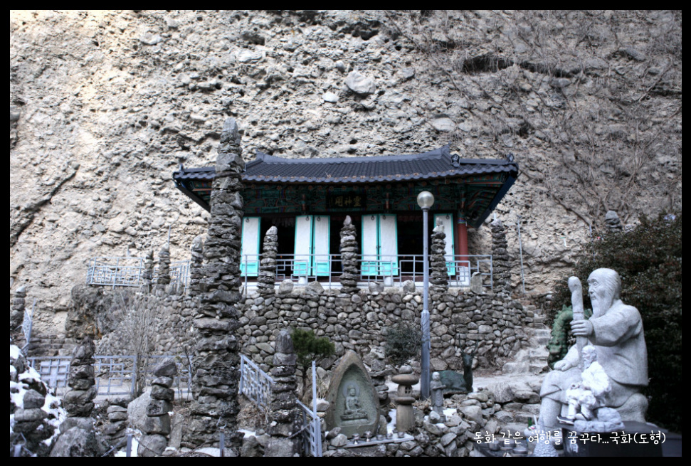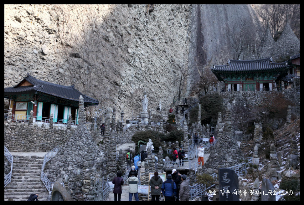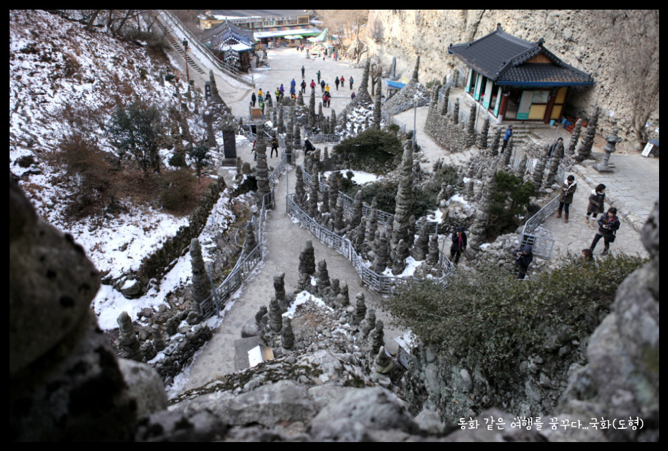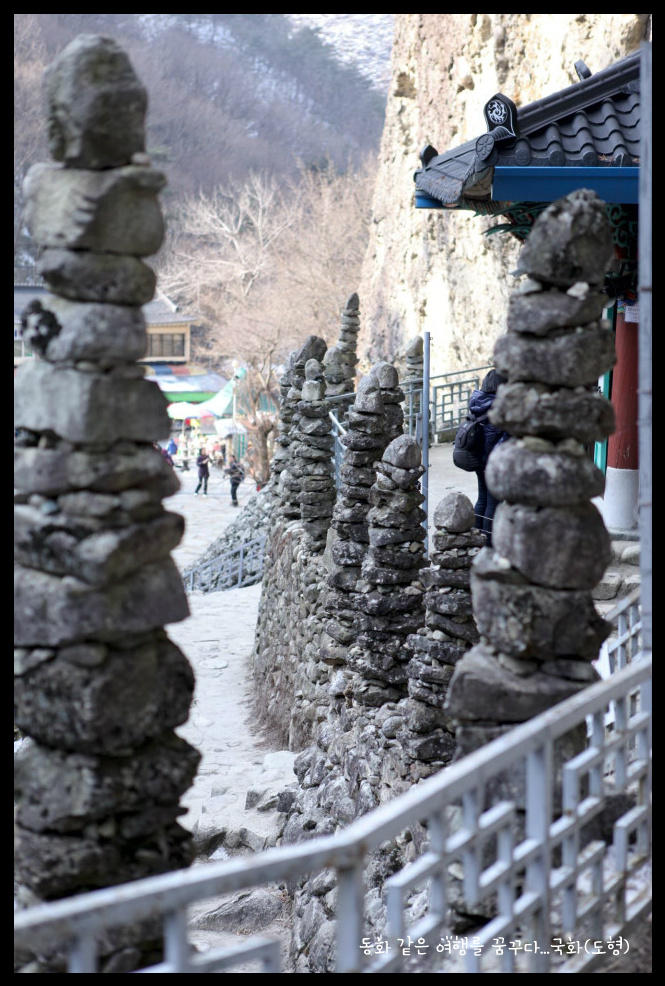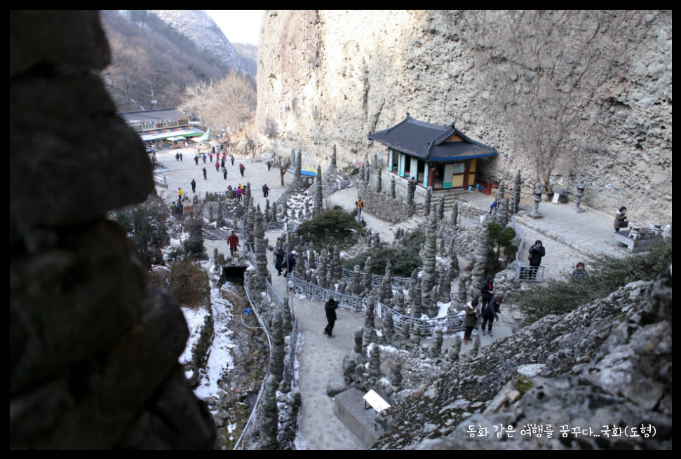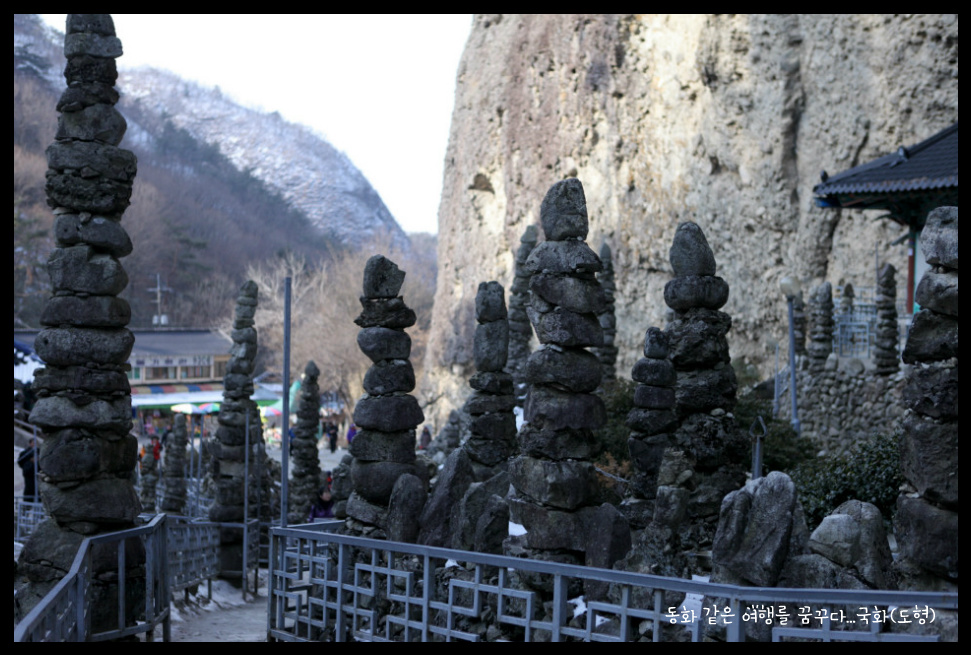 쌓아올린 탑이 80여기가 있다. 동쪽 수봉우리의 암벽에는 화암굴(華岩窟)이 있으며