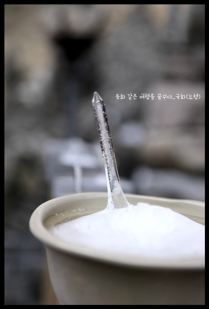 특히 날씨가 추운 한겨울에는 이 정한수 위에 고드름이 생기는데 보통 고드름같이 위에서