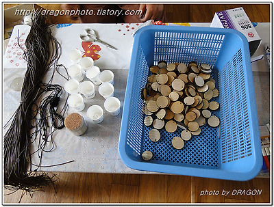 여기에 나누어준 줄을 끼우면 이쁜 목걸이가 됩니다.