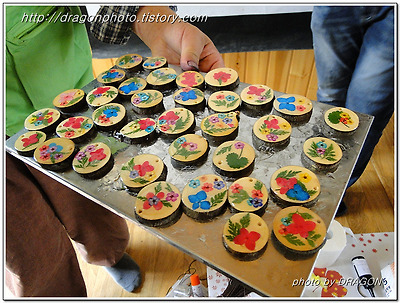 오디따기 체험행사가 끝난후 압화체험장에 모여 압화목걸이를 만드는 체험이 있었습니다. 압화체험도 이강섭 테마마을 운영위원장께서 지도하셨습니다.