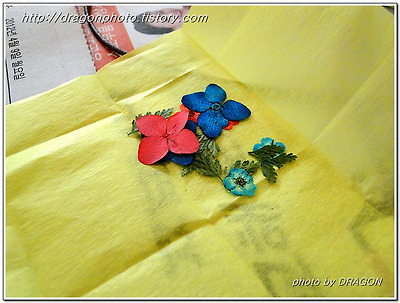 2사람당 지급되는 압화된 꽃과 잎입니다.
