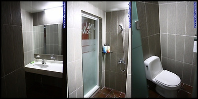 세면장을 들어서면 샤워장이 보이고 샤워장을 지나야 화장실이 있습니다