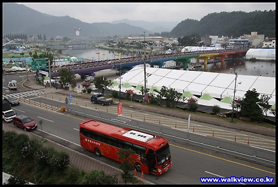 물축제가 열리고 있는 탐진강 바로 옆에 있어서 전망이 아주 좋습니다