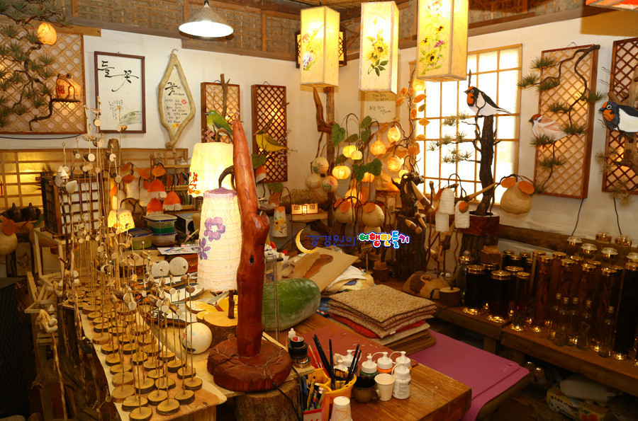 오형제고개길에 자리잡은 오돌개마을 심마니공방은 오돌개마을 체험중에서도 고사목을 이용한 스탠드나 한지등 만들기 체험이 진행되고 있어서 사람들에게 색다른 즐거움을 선사한다