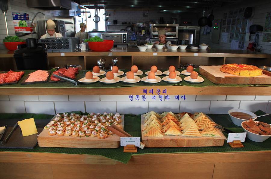 각종 빵과 과일, 커피와 차, 요구르트등 디저트 종류도 다양하다.