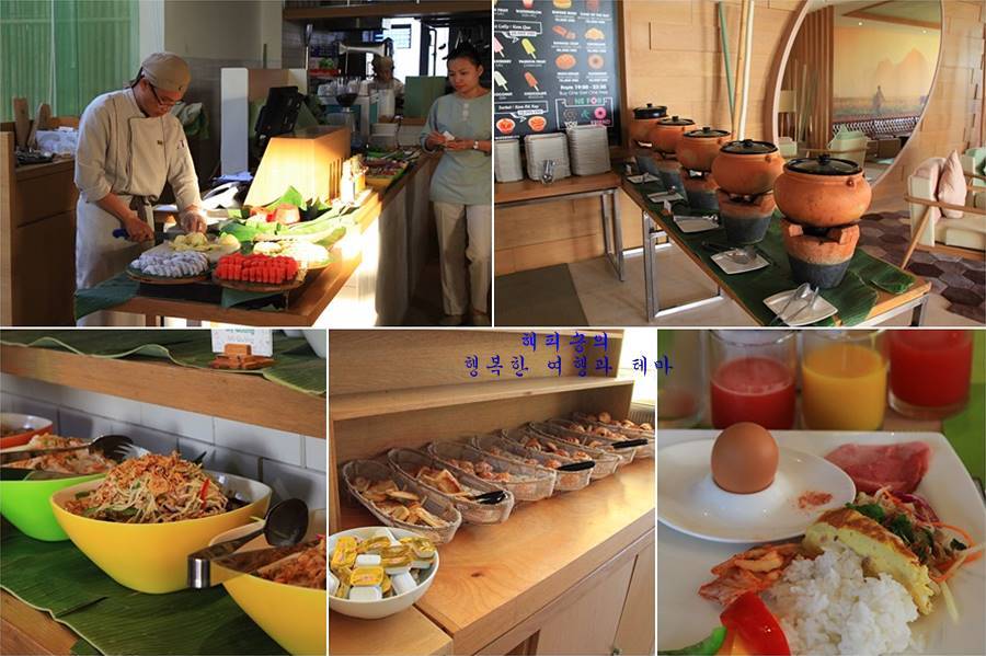 1층 로비 옆 식당에서 호텔 조식으로 베트남식 요리와 스프링롤, 쌀국수, 오믈렛, 찐 계란,