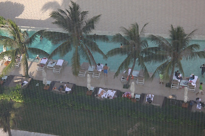 공용수영장에서는 수영을 즐기고 있는 모습이 보인다.