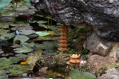 자그만 연못에 아기자기하게 조형물을 넣어 꾸며놓았다.