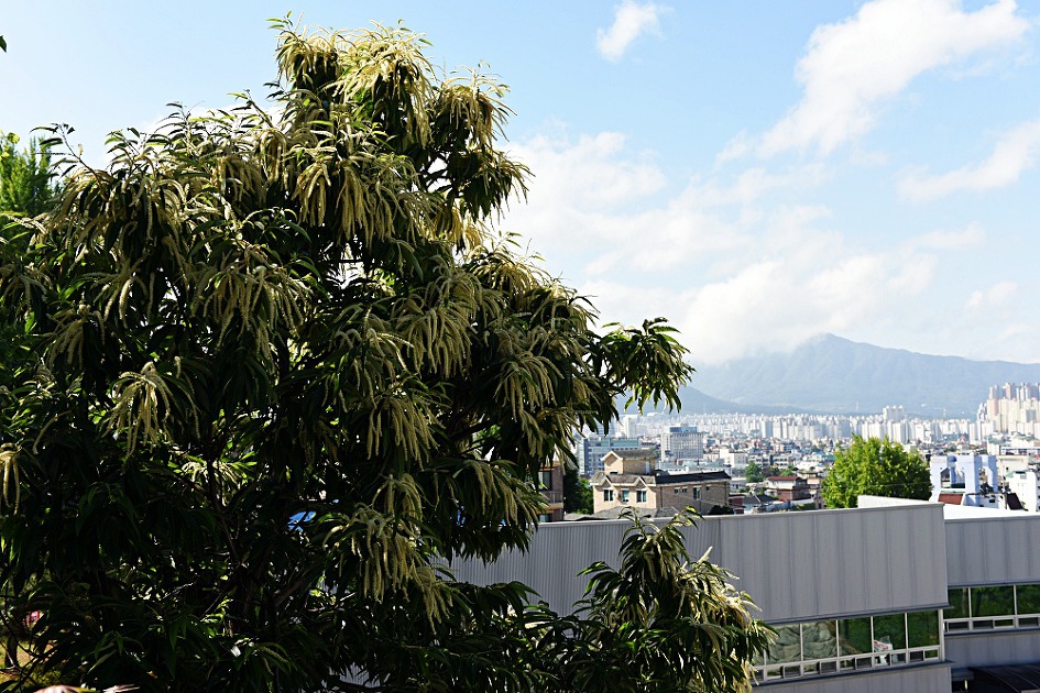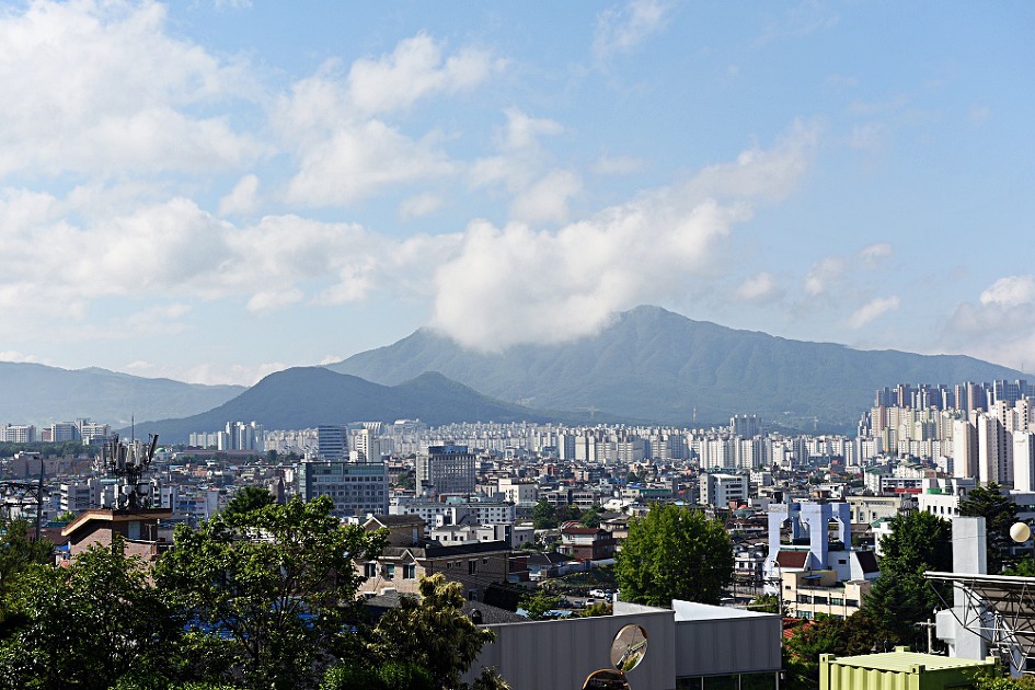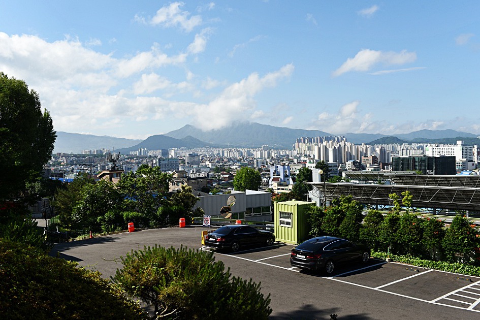 산 자락의 춘천시가 한눈에 내려다 보이는