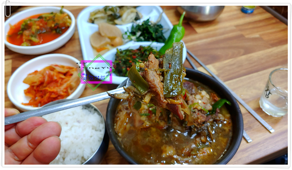 뜨끈한 한뚝배기 소구레 국밥 드시다 추가하면 무료로 가득 리필해 줍니다. 칼칼한 맛에 쫄깃한 소구레와 선지가 든 소구레 국밥을 한 그릇 하면 속이 든든합니다. 이제 다시 길을 나서봅니다.