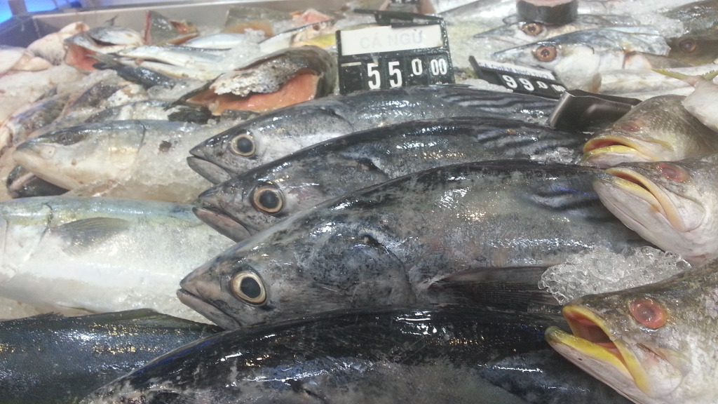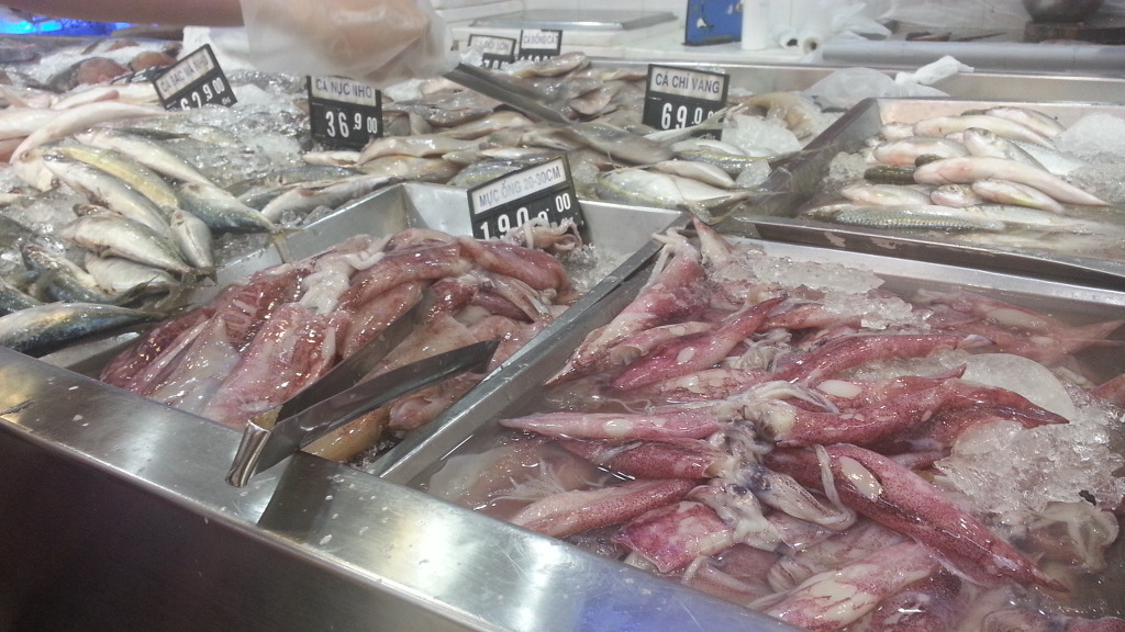 생선 1 kg 55,000 dong (2,750원), 한치가 1Kg 190,000 dong (9,500원), 새우 1Kg 155,000 dong (7,750원), 수산자원이 풍부한 베트남이 부럽다