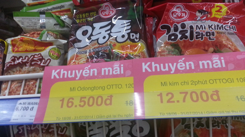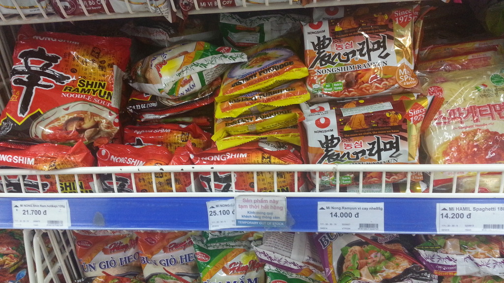 면을 좋아하는 베트남 사람들! 수십 가지의 면들로 가득하다. 한국라면도 물론 있다.