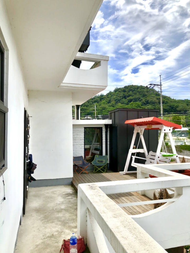 2층 테라스에 놓여 지니