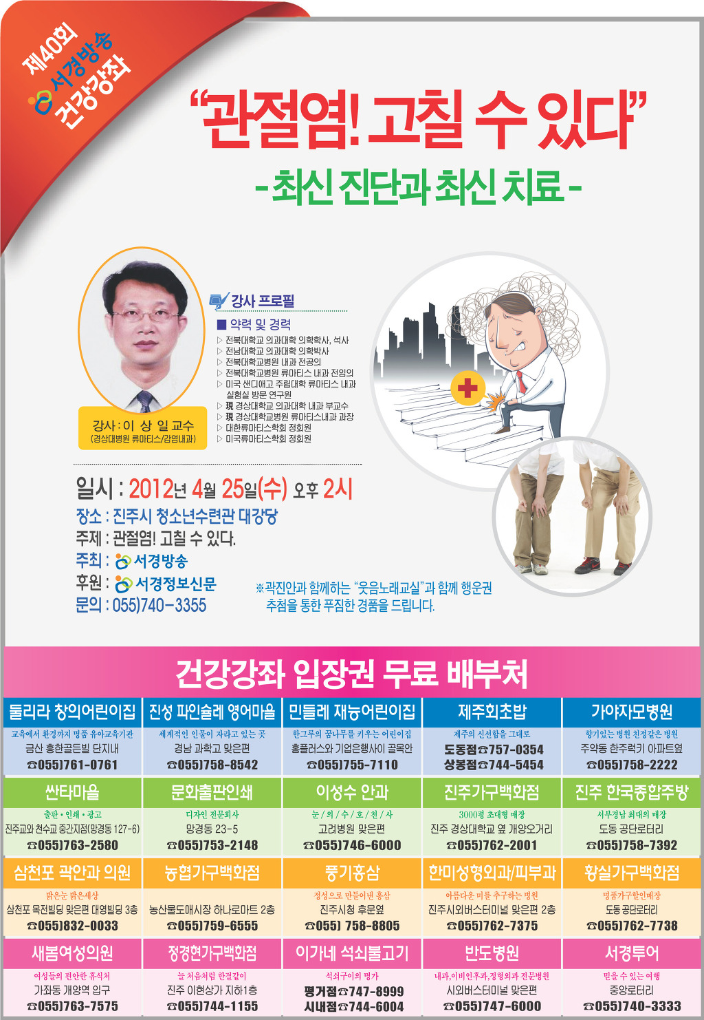 제40회 서경방송 건강강좌의 주제는 "관절염"입니다.
