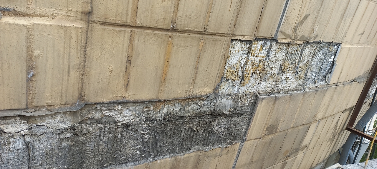 확인하니 구조적인 문제로 인하여 균열이 되면서 외부 타일도 떨어지고