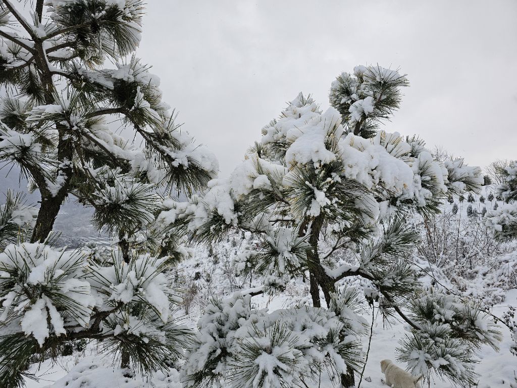 나무 위에 부드럽게 쌓여 마치 세상이 흰색의 부드러운 담요로 덮인 듯한 느낌을 줍니다.