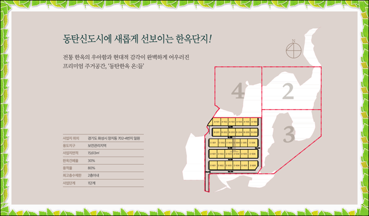 누구나 한번쯤 로망으로만 생각하던 현실을 직접 체험할 수 있습니다. 그리고 동탄신도시와 적당히 가까워서 인프라도 공유할 수 있다는 장점을 가지는데요. 한옥마을 온들 사업개요를 살펴보겠습니다.