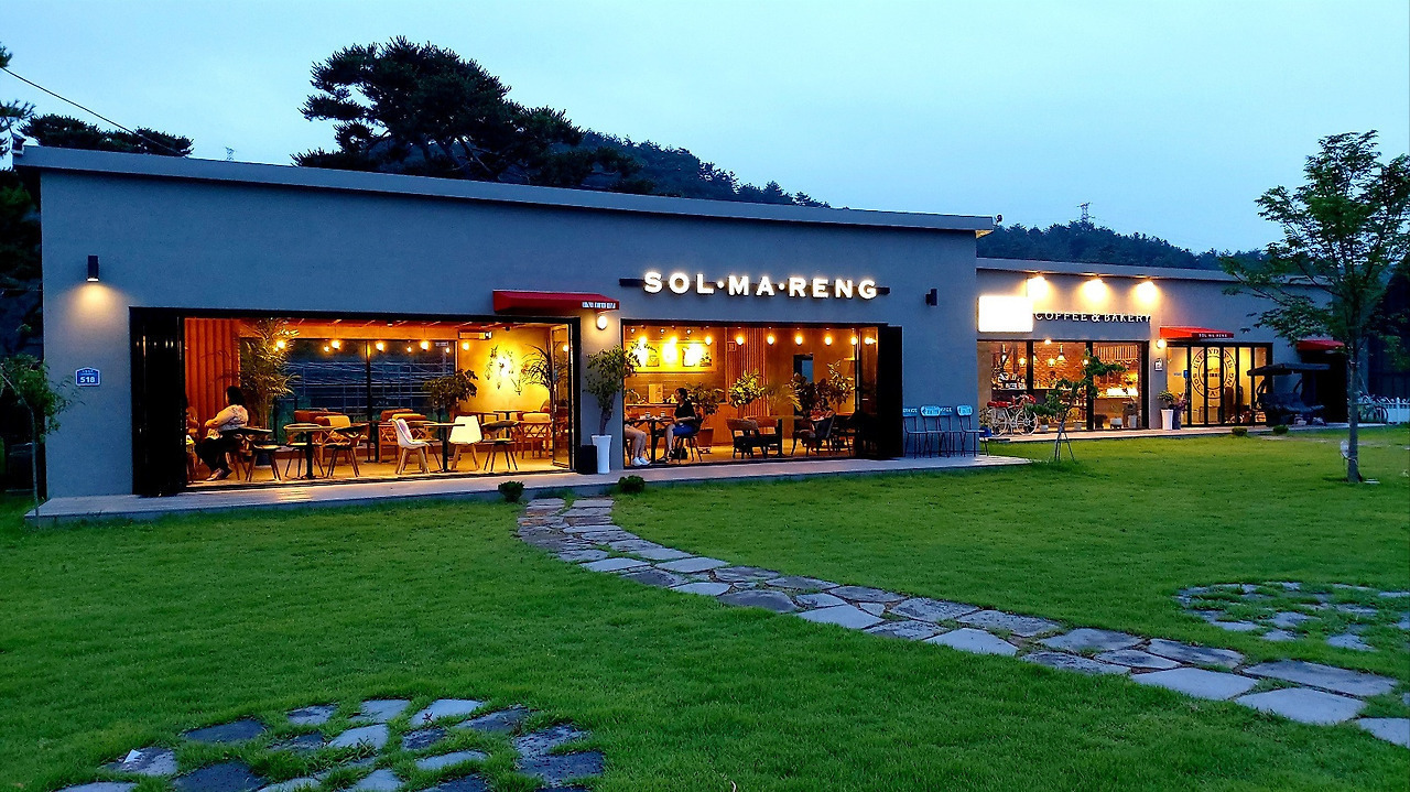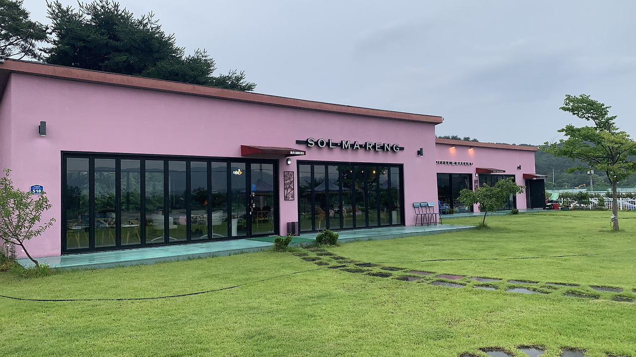 외부 잔디밭에서 바라본 솔마랭카페