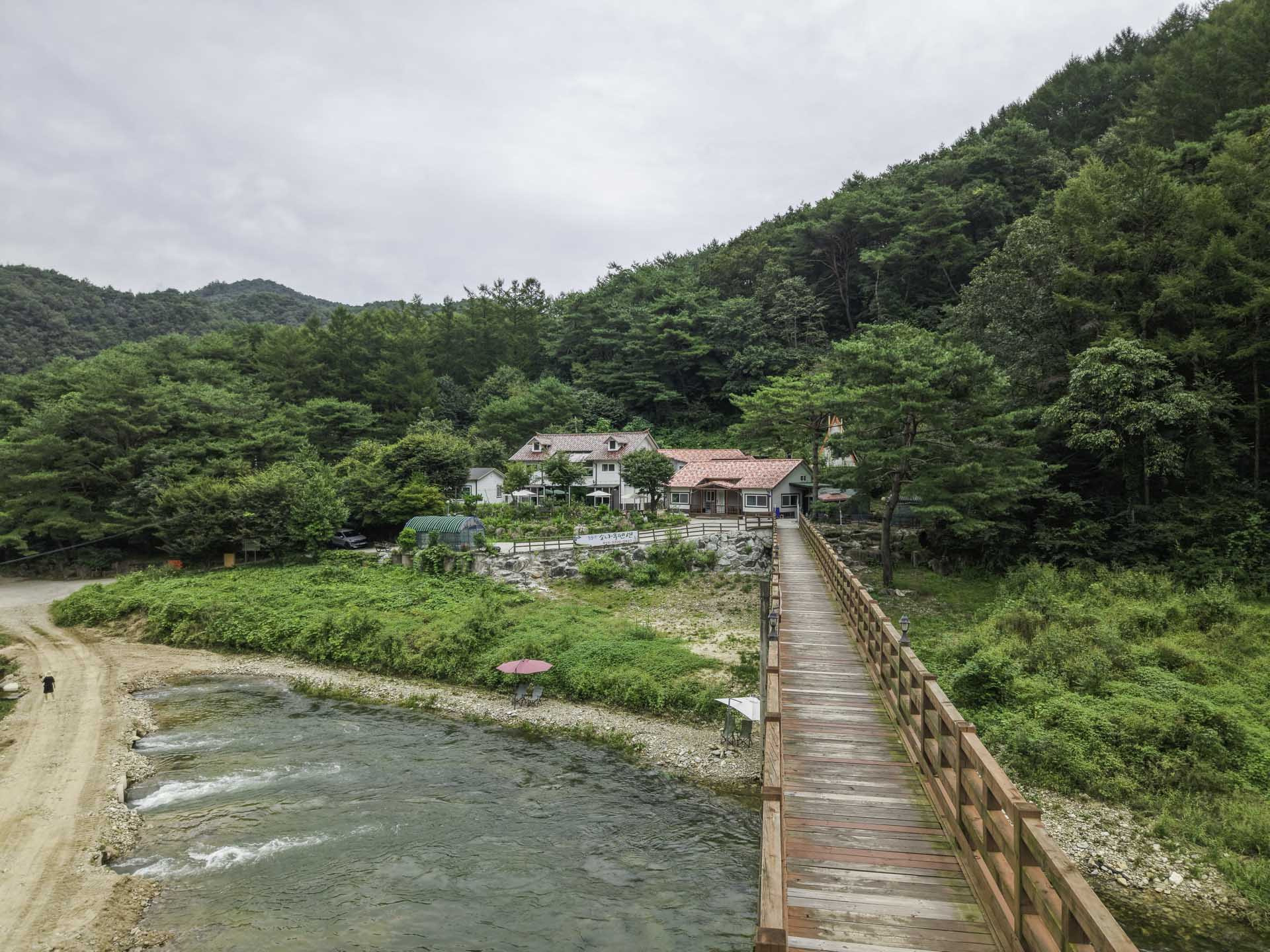청정한 홍천강이 바로 앞에 흘러 물놀이, 낚시 등 다양한 레저 활동이 가능합니다.
