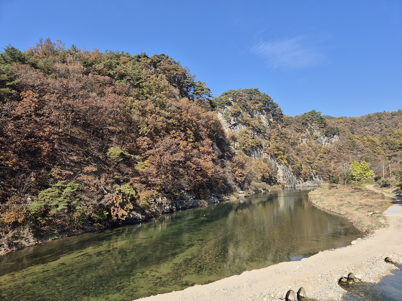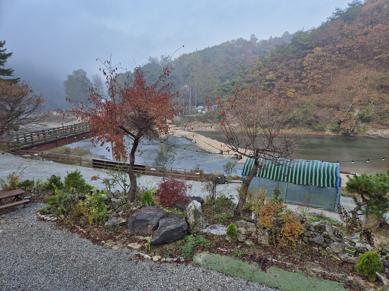 청정한 홍천강이 바로 앞에 흘러 물놀이, 낚시 등 다양한 레저 활동이 가능합니다.
