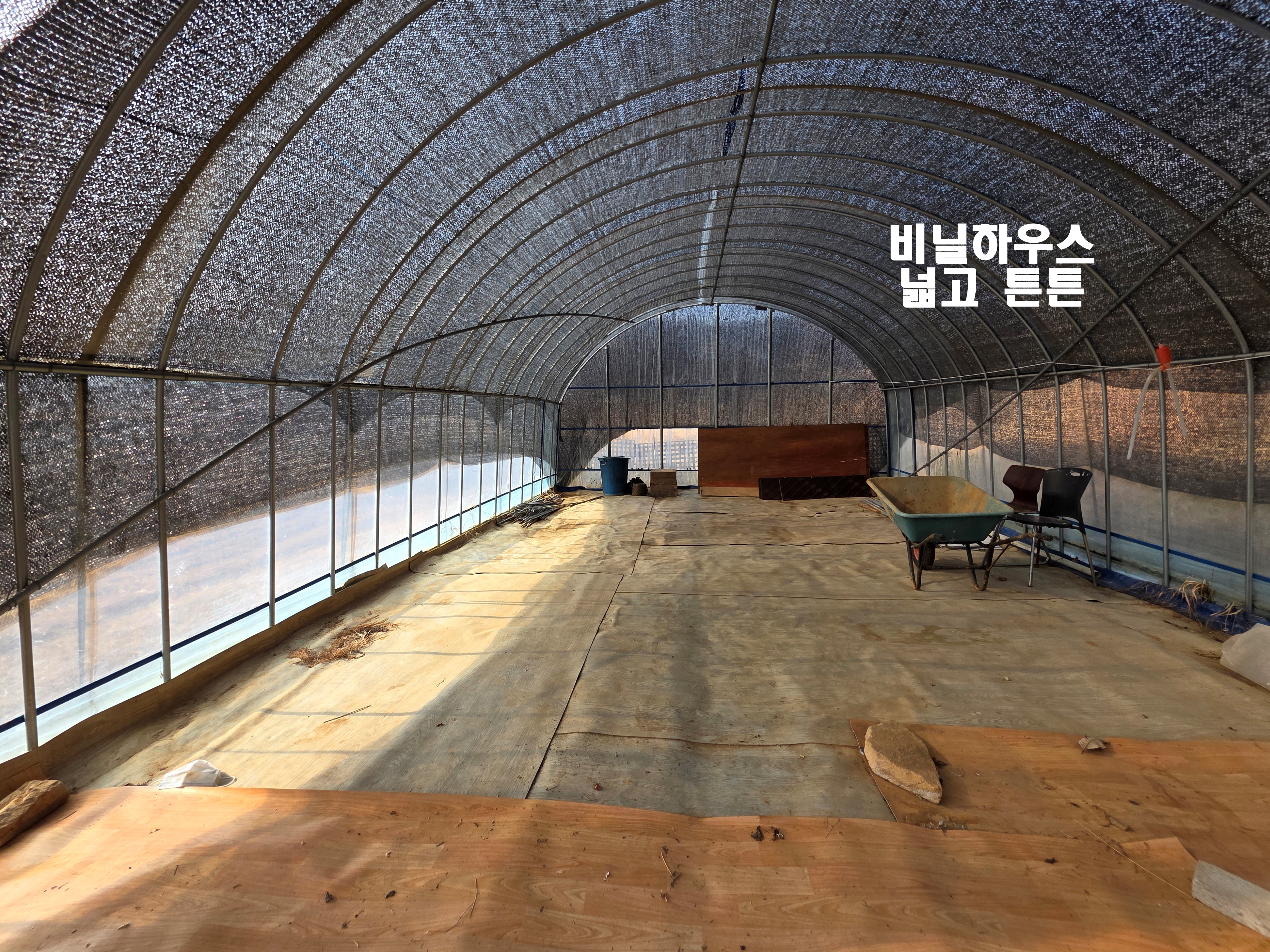 텃밭도 있으며 튼튼하고 넓은 비닐하우스와