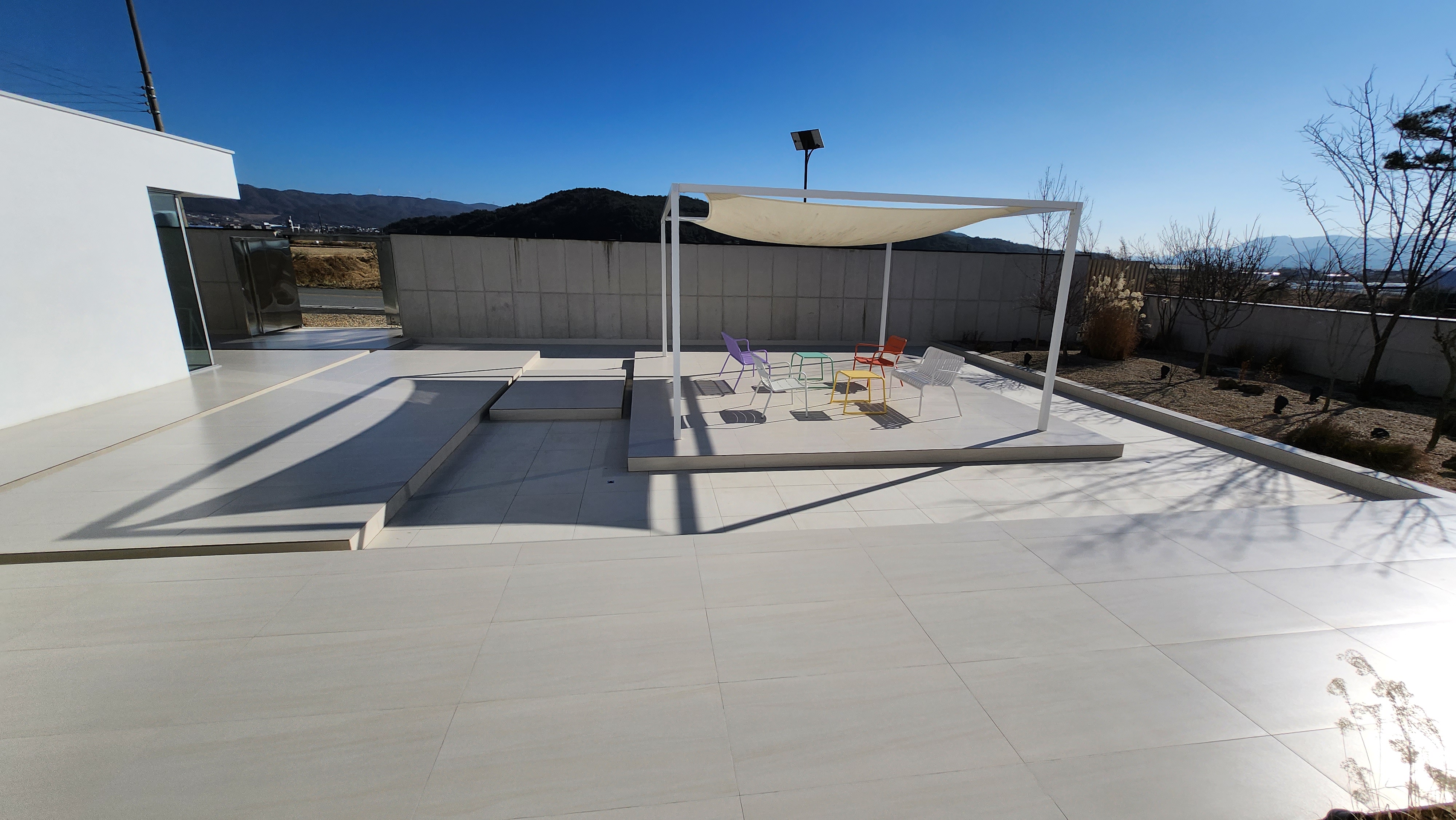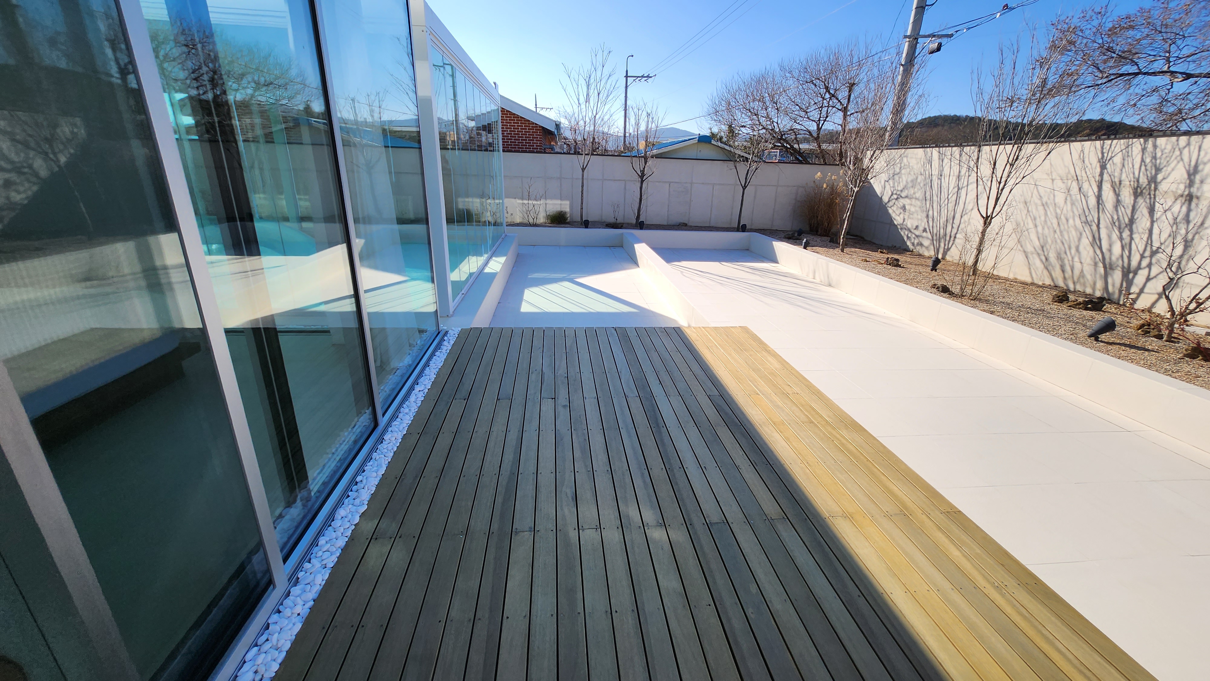 야외부터 싹 다 바닥이 화이트 포셀린 타일로