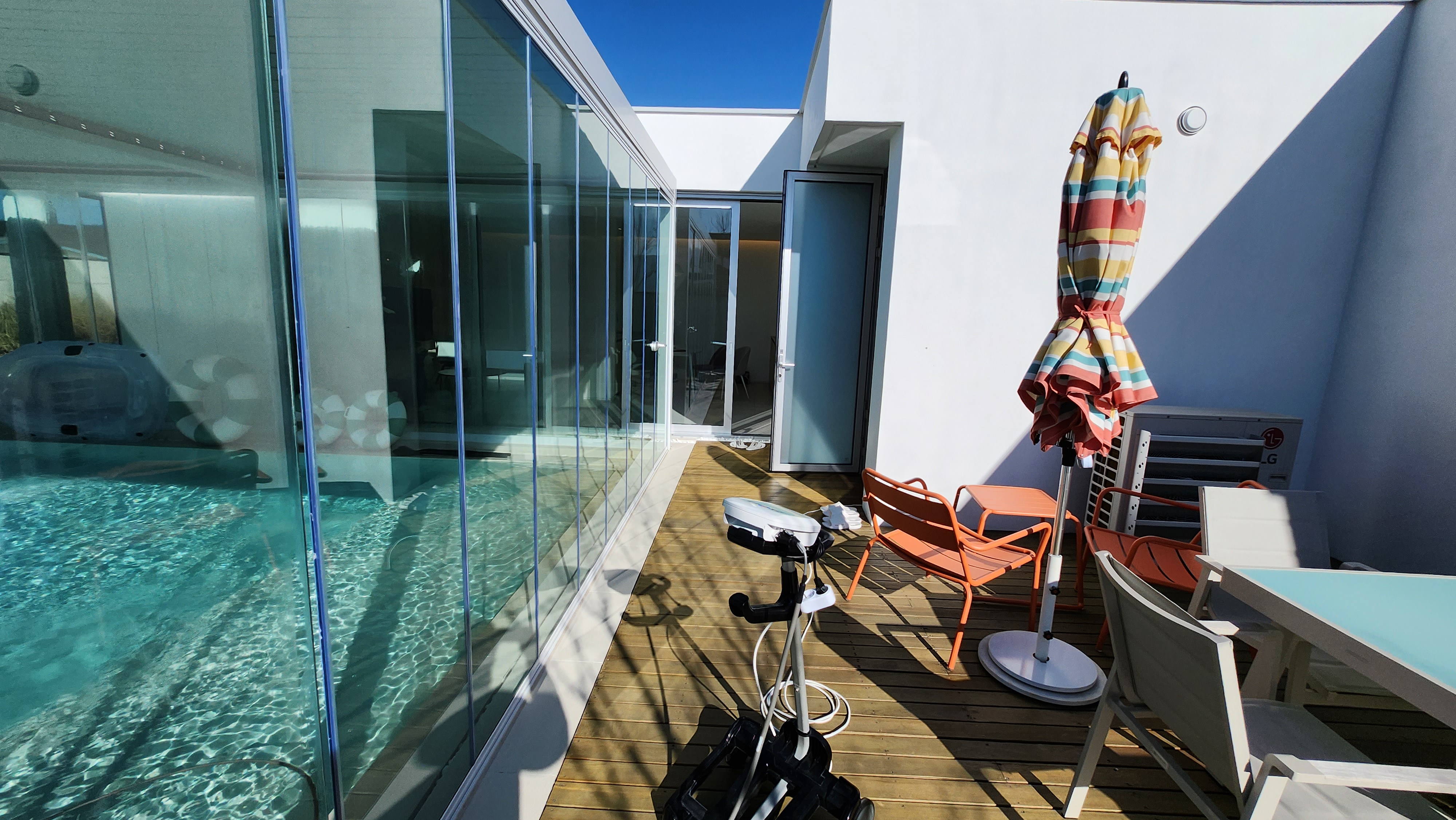 수영장 대형 글라스가 접었다 폈다 할 수 있으며