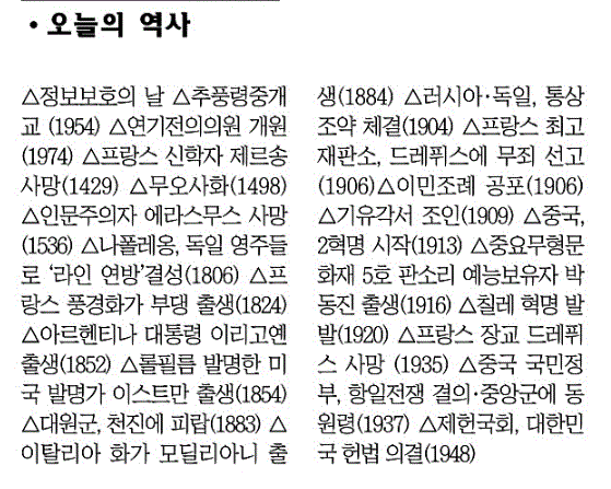 오늘의 역사(7월 12일) 오늘은 그레고리력으로 193번째(윤년일 경우 194번째) 날에 해당한다 |