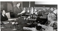 | 🌲71년 제4차 한·미 연례안보협의회의(국방각료회담 개칭) 개최(서울) 1971년 제1차 한미안보협의회의 개막 1973년 9월 12일 개막된 한미안보협의회의. 한반도의 안보에 관한 제반 문제를 중점적으로 협의하는 제1차 한미안보협의회의가 1971년 7월 12일 서울에서 개막됐다. 회의는 1968년 5월 27일과 28일 양일간 워싱턴에서 열린 제1차 한미국방장관 회담이 모태였다. 제1차부터 3차 회의까지는 한미국방장관 회담이었으나 1971년 회의부터 양국 국방장관을 대표로 하는 한미안보협의회의(한미연례안보협의회)로 칭했다. 협의회는 한미간의 각종 안보문제를 해결하는 최고의 협의기구로 매년 교대로 회의를 가졌다. 그 후 한미연합군사령부의 창설에 따라 양국간 군사적인 문제를 협의하기 위해 양국 합참의장을 대표로 하는 군사위원회가 1978년부터 별도로 설치 운영되고 있다. | |