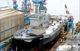 | ✿2005년 부산 한진중공업에서 해군대형수송함 독도함 진수식 한국형 ‘경항공모함’으로 불리는 ‘독도함’은 아시아에서 가장 큰 규모의 수송함으로 2007년 7월 실전에 배치된다. 12일 오전 부산 영도 한진중공업 조선소. 한국 해군의 위상을 한 단계 높여줄 대형상륙함(LPX) 1번 함 ‘독도함’이 처음 그 위용을 드러냈다. 독도 수호의 의지를 천명하기 위해 ‘독도함’이라고 명명된 동북아 최대의 대형상륙함은 자태부터 달랐다. 첫눈에 들어온 독도함은 엄청난 크기에서 오는 ‘웅장함’ 그 자체였다. 배의 갑판 길이는 199.4m, 폭은 31.4m나 됐다. 이 헬기 갑판에서는 6~8대의 UH-60 기동헬기가 동시에 뜨고 내릴 수 있다. 독도함은 크기만큼이나 능력도 엄청나다. 이 배는 한 번에 해병대 1개 대대 병력(720여명)과 최대 70대의 전차를 실을 수 있다. 여기에 차량은 최대 200여 대, UH-60 기동헬기와 AH-1 공격헬기 15대, 전차 등을 싣고 40노트 이상 속력으로 적 해안에 상륙할 수 있는 고속 공기부양정(LCAC) 2척도 탑재 할 수 있다. 독도함은 국내뿐 아니라 아시아에서도 ‘최대’를 자랑한다. 세계 2대 해군 강국으로 평가받는 일본이 보유한 ‘오오스미급’ 상륙함도 8900t 정도이며, 중국도 독도함에 견줄만 한 상륙함을 갖고 있지 않다. 해군 관계자는 “독도함은 항공과 해상을 통한 상륙작전이 가능하고 앞으로 이지스함과 한국형 구축함 등으로 구성될 ‘전략 기동함대’를 지휘하는 지휘함 역할도 하게 된다”면서 “대양해군이라는 한국 해군의 꿈과 목표가 눈앞에 다가왔다”고 말했다. 해군은 향후 독도함을 해군 작전뿐 아니라 유엔평화유지활동(PKO)과 쓰나미 등 국제적인 재해재난 구호활동에도 투입한다는 생각이다. 이날 진수식에는 노무현(盧武鉉) 대통령과 윤광웅(尹光雄) 국방장관, 남해일 해군참모총장 등 정·관계 주요 인사와 해군, 업계 관계자 400여 명이 참석했다. 행사에는 미국과 영국, 독일, 중국 등의 14명의 외국 무관들이 참석했지만 일본 무관은 참석하지 않았다. |