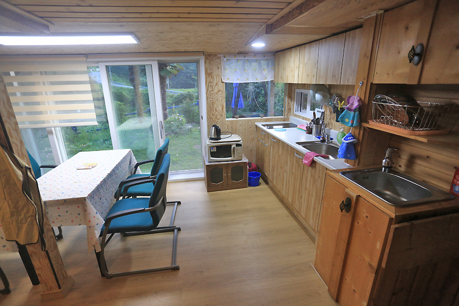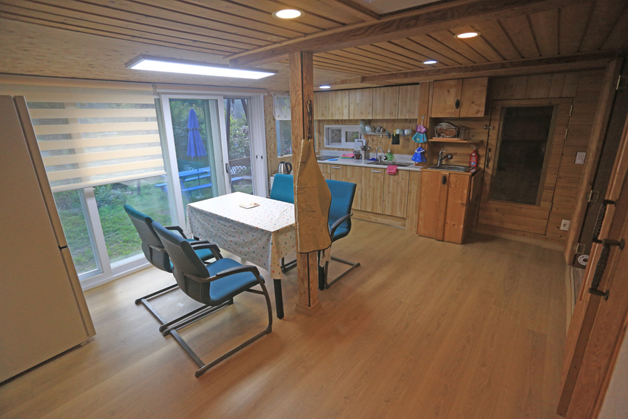수세식 화장실(샤워실) 하나, 군불방(군불때는 공간) 겸 휴게실이 자리합니다.