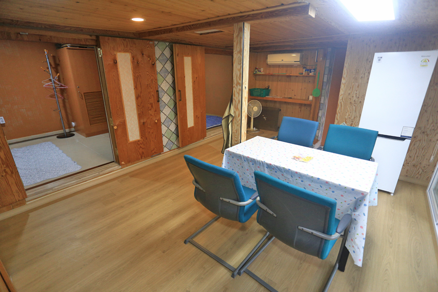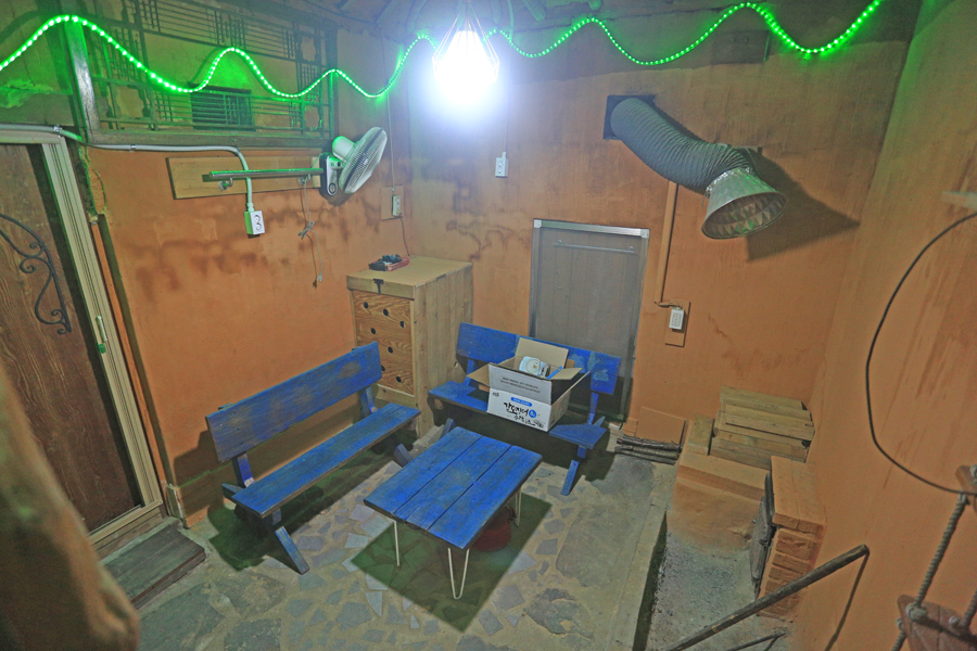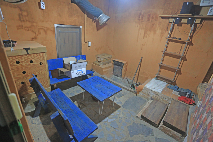 타일로 된 방은 구들장으로 나무를 태워서 군불 난방을 합니다.