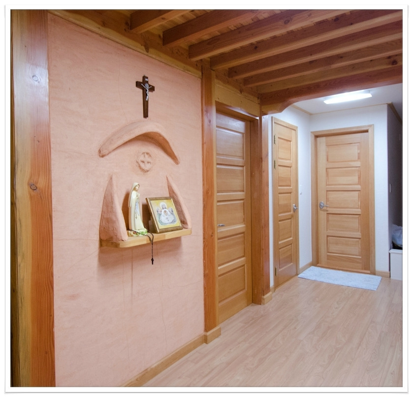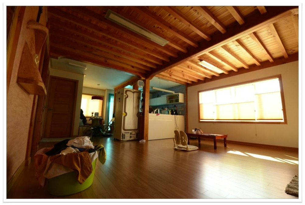 우리집은 경량목골조로 지은 서양식 목조주택이다. 내부는 한옥구조와 흙벽을 좀 채용했다.