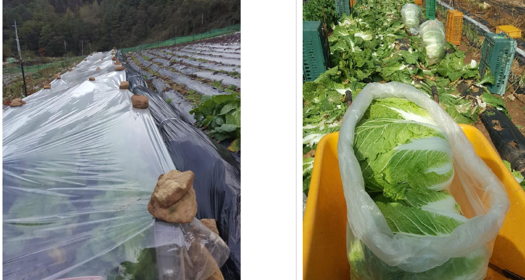 * 비닐 봉투 (가로90cm *세로 1200cm) 이중으로 겹처서 사용 / 배추 9포기 들어감