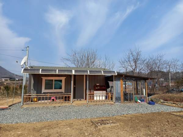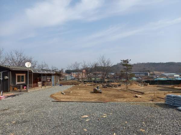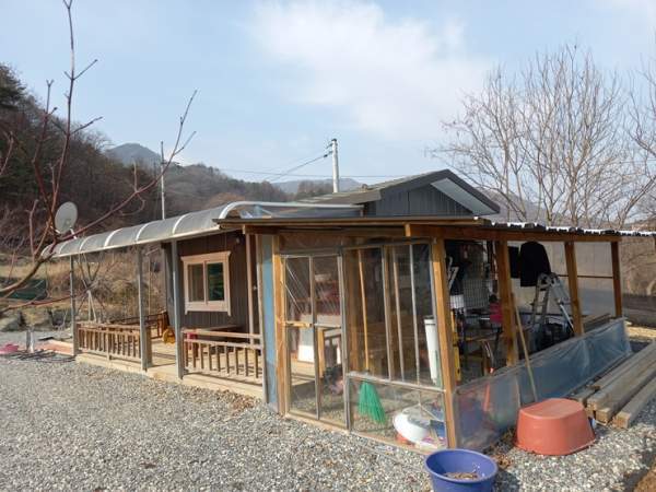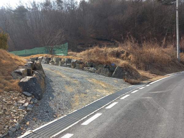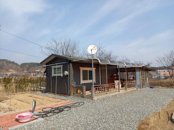 되는데요 진입로 양옆을 석축으로 단장을 하고 바닥에는 골재를 깔아 놓은 상태입니다 서쪽~동쪽 방향 동쪽~서쪽 방향 남쪽~북쪽 방향 농막 설치된 금산군 토지의 각 방향 모습인데요 양지바른 위치에 남향으로 설치되어 있는 농막 외관입니다 6평 규모의 농막 우측으로는 간이 창고 시설도 보입니다 상수도 계량기...