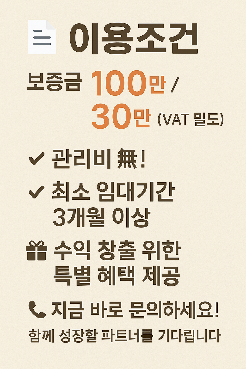 보증금 100/30(VAT 별도)