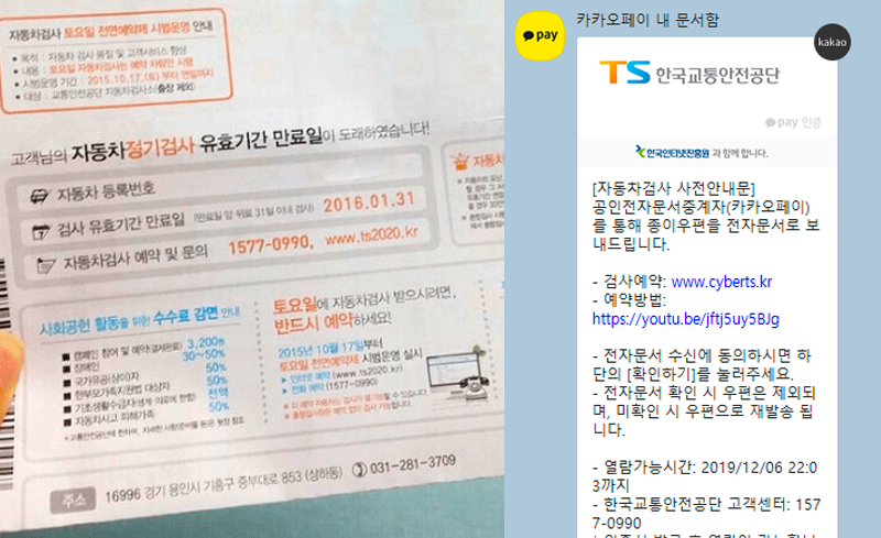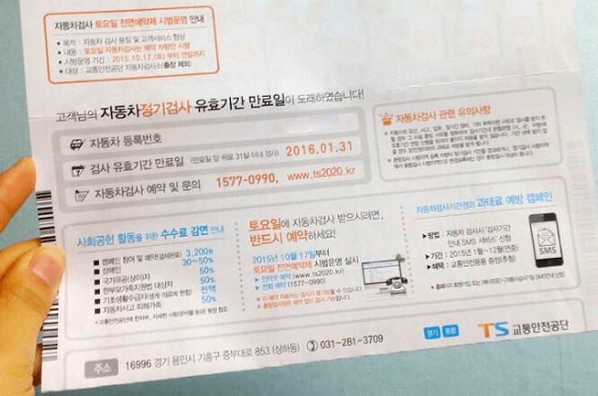 자동차정기검사기간이 되면 우편과 메세지로 알림이 옵니다. 우편물 및 메세지에는 검사기간과 예약방법, 준비물 등이 자세하게 나와있어서 꽤나 큰 도움이 됩니다.