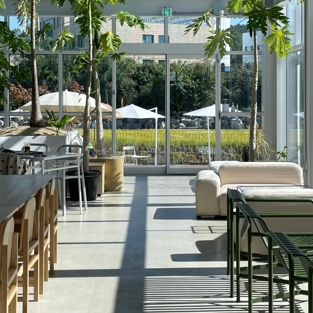 유리 온실 속 카페에 온듯한 평택의 ‘카페타임슬라이스’. 카페 곳곳 푸릇한 식물을 볼 수 있어 머무는 자체로 힐링 되는 곳이다. 게다가 엄청난 양의 베이커리를 자랑하는데 스콘, 크루아상, 베이글은 물론 타르트, 케이크, 쿠키, 바게트류까지 준비되어 있어 남녀노소 누구나 좋아할 수밖에 없을 것. 천장의 유리창으로 햇빛을 받으며 여유를 즐기기에도, 야외 테라스로 나가 숲뷰를 즐기기에도 좋으니 다가오는 가을, 나들이 장소로 딱이다.