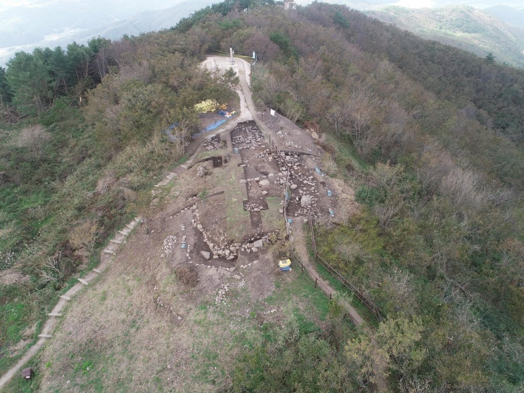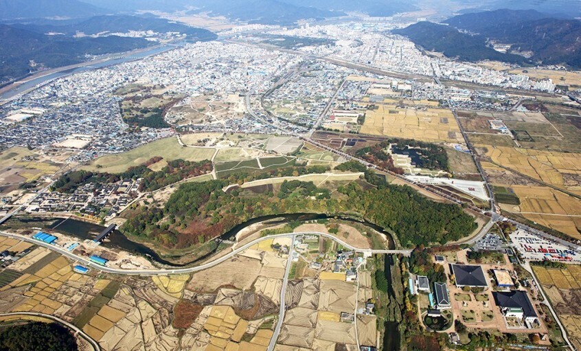 그러나 궁궐터에서 보면 겹겹이 산으로 둘러싸여 물 빠지는 것이 보이지 않는다.