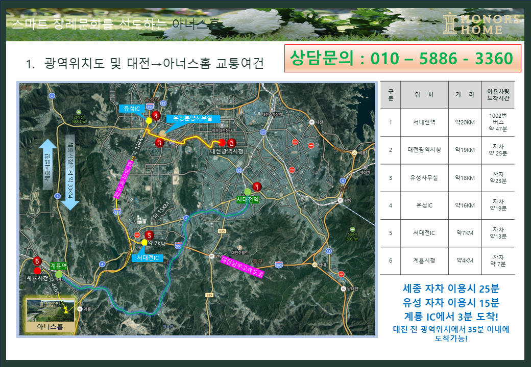 아너스홈은 계룡IC에서 1분, 유성IC에서 15분 위치