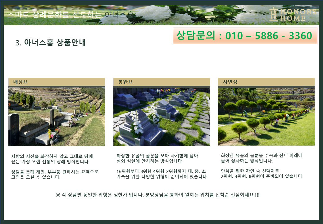 명당 중의 명당에 자리한 아너스홈이 수목장 봉안묘 매장묘를 분양합니다.