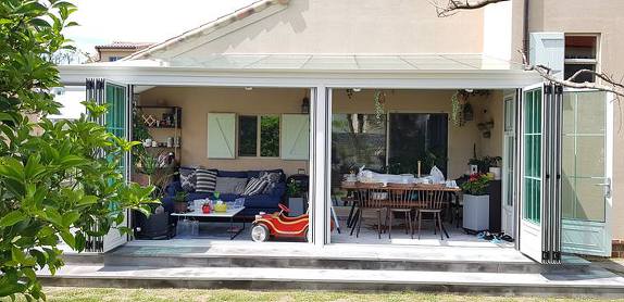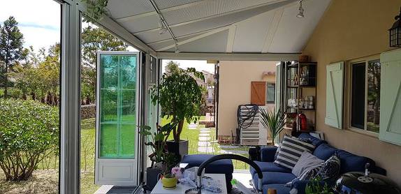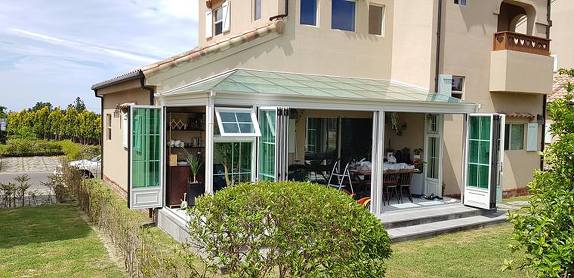 썬룸의 전면부를 활짝 열고